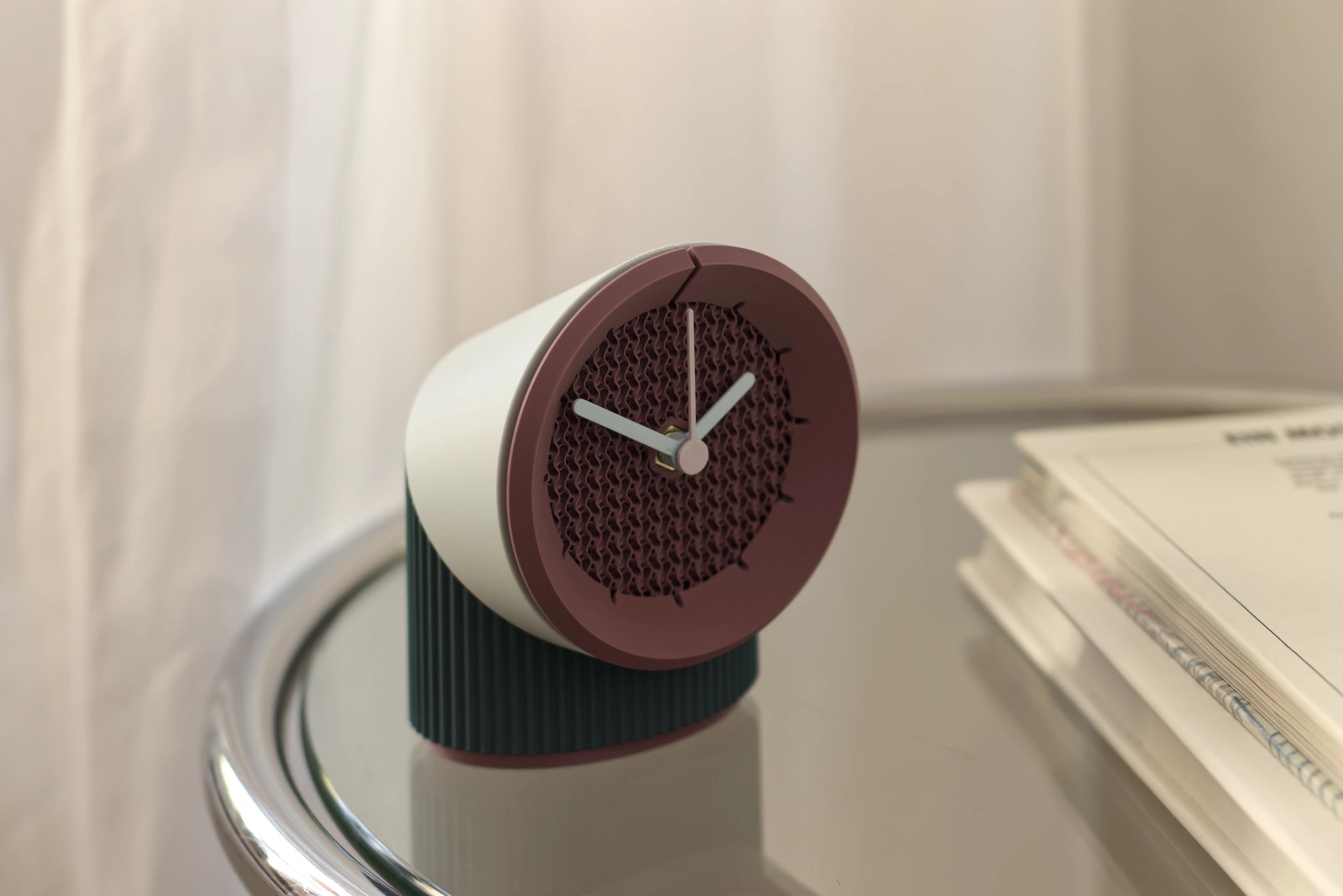 Die PIVOT Clock ist mehr als eine einfache Zeitanzeige. Sie ist ein Designobjekt, das Farbe in deinen Alltag bringt. Jede der Farbvarianten kombiniert mehrere Töne, inspiriert von Früchten wie Guave, Maracuja oder Blaubeere, und macht die Uhr zu einem echten Hingucker in jedem Raum. Dank des drehbaren Uhrenkopfes kannst du das Ziffernblatt flexibel ausrichten, egal ob auf dem Nachttisch, im Regal oder an der Wand. Sie ist eine analoge Uhr, die auffällt, ohne laut zu sein und kommt ganz ohne App und Display aus.