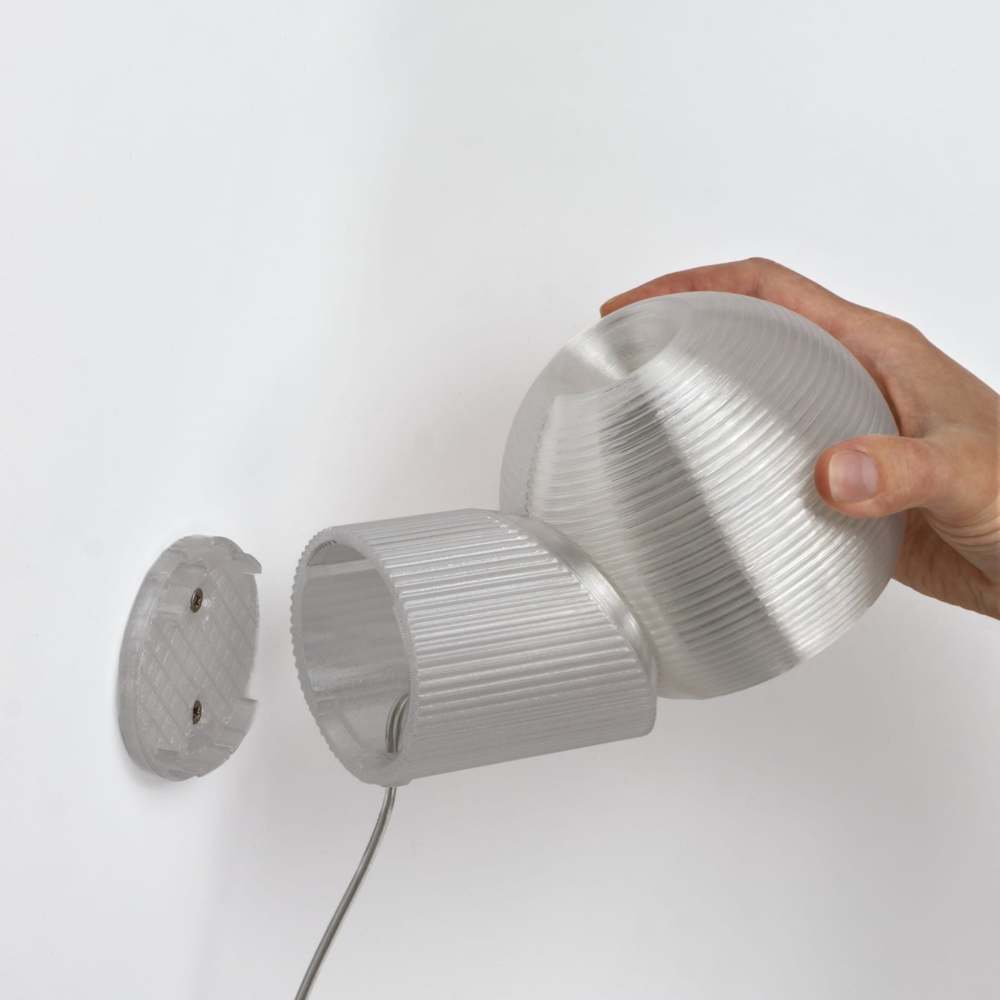 Die Leuchte ist so konstruiert, dass sie sich am Ende ihrer Lebensdauer sortenrein zerlegen und recyceln lässt. Das entspricht unserem Prinzip der Kreislaufwirtschaft. Auf Klebstoffe verzichten wir vollständig, um Reparatur und Wiederverwertung zu erleichtern.